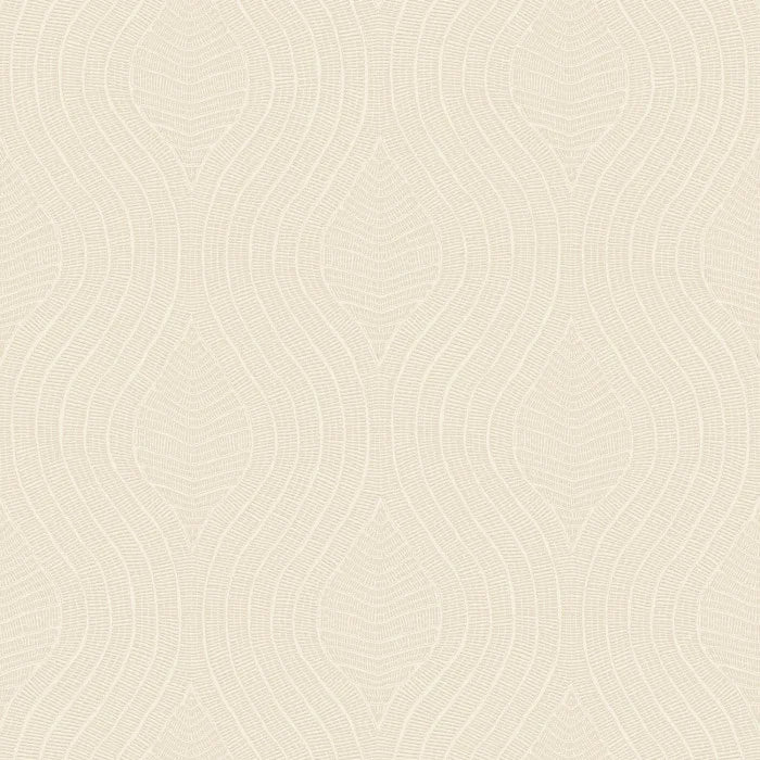 Abstract geometric wave patterned wallpaper with vinyl coating.