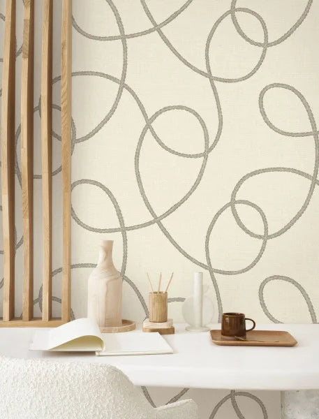 Vinyl-coated wallpaper with a rope pattern.