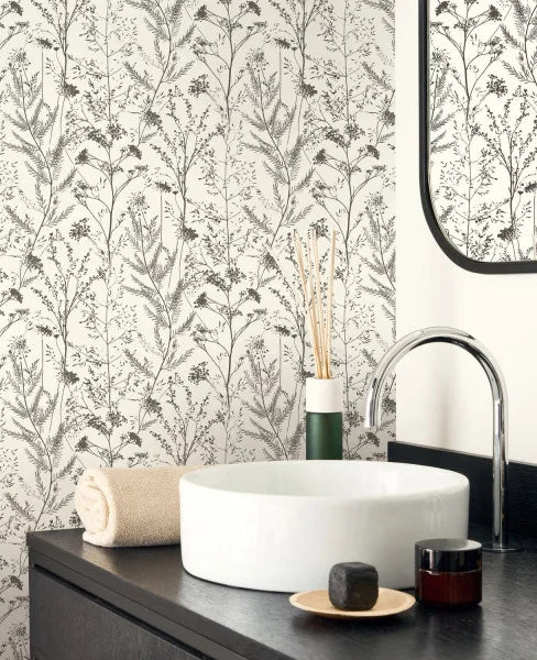 Vinyl-coated meadow patterned wallpaper.