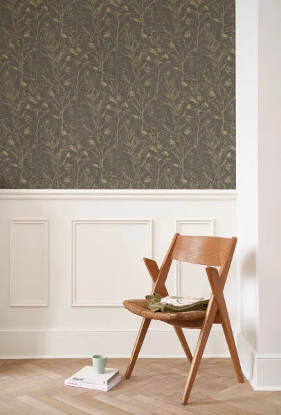 Vinyl-coated meadow patterned wallpaper.