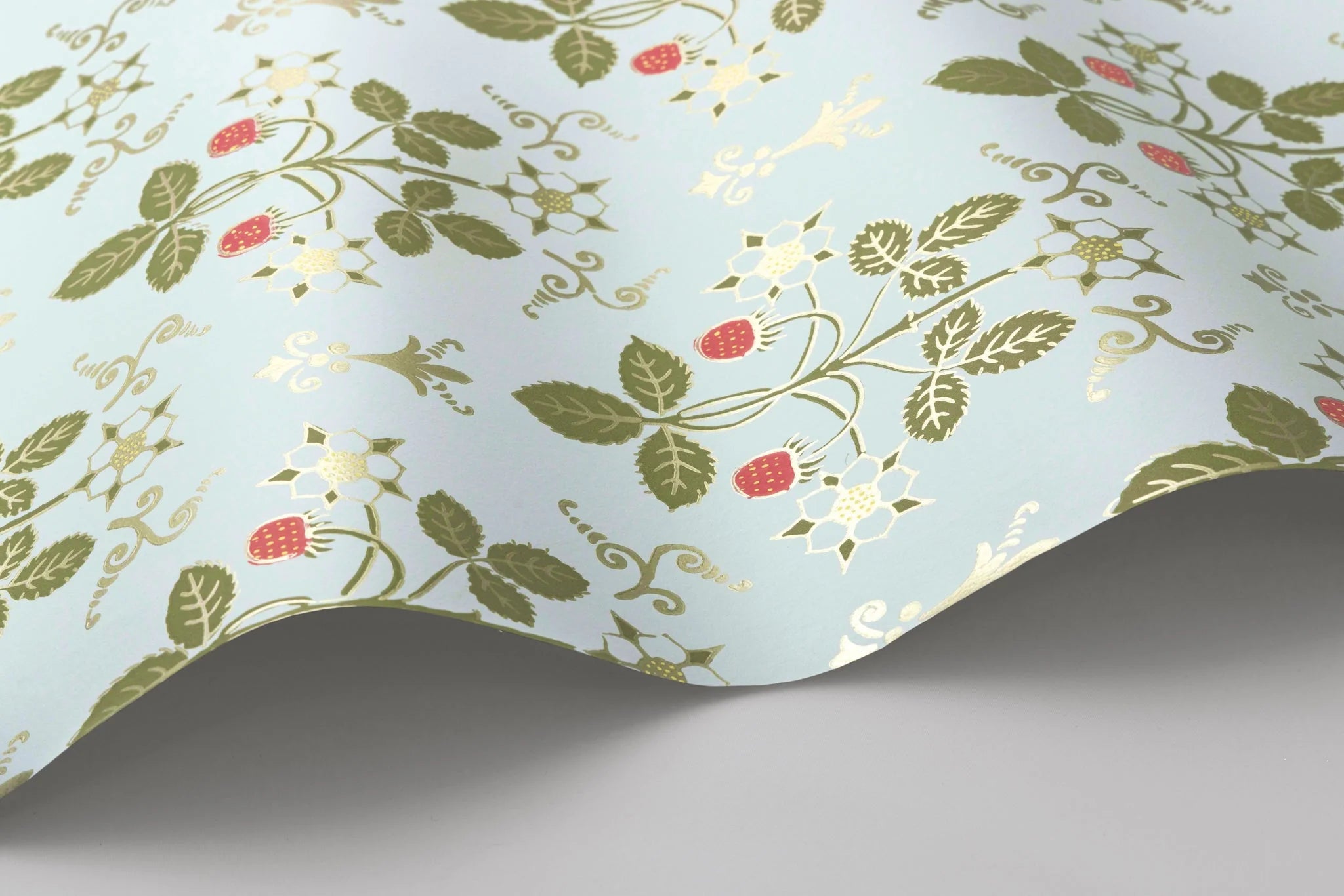 Strawberry‚ uniform print is an organic geometric of delicate strawberry fruits and flowers. Originally a hand-block printed design from the 1840s, this design has been reimagined in soft hues, playing to the pastoral elements found throughout.