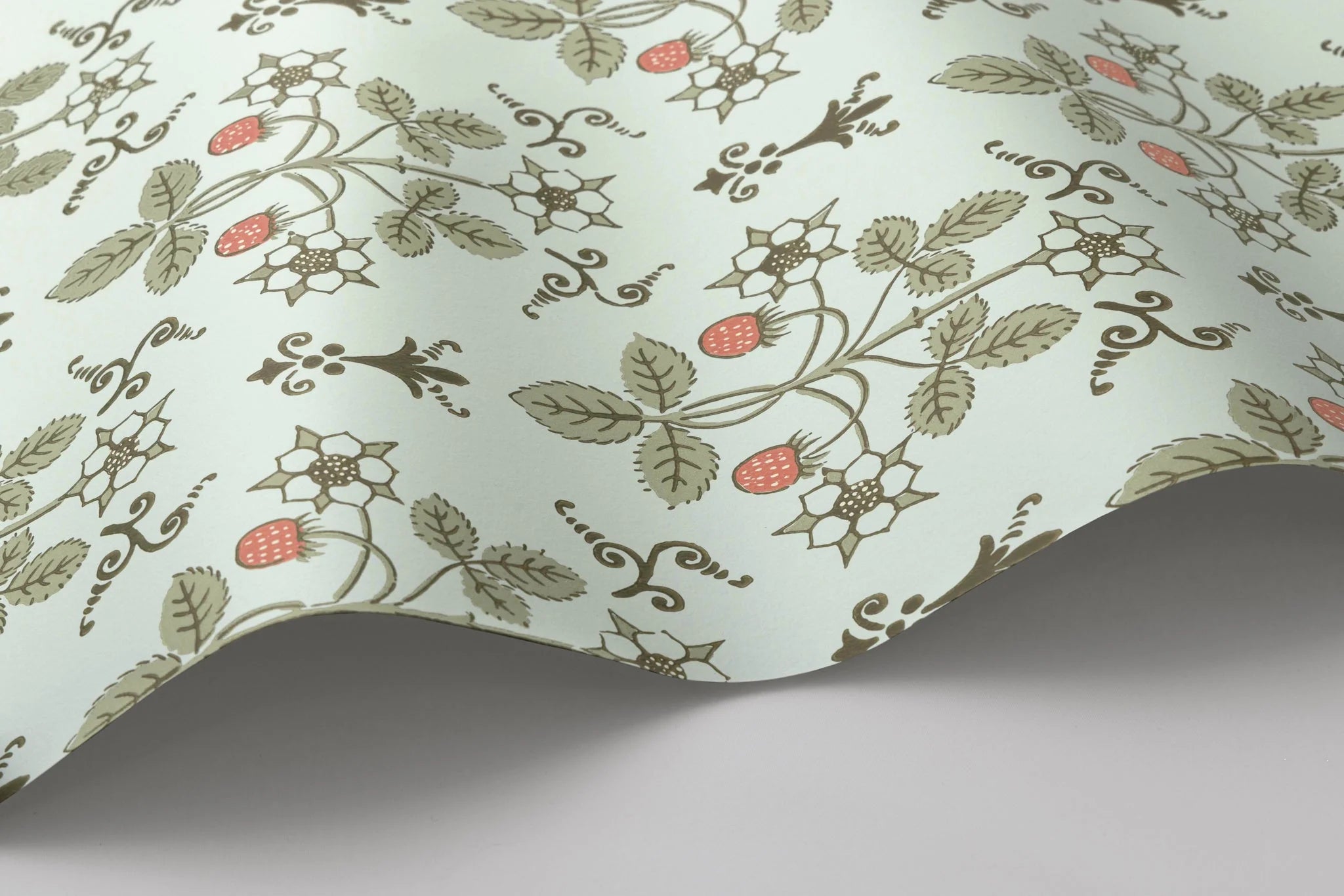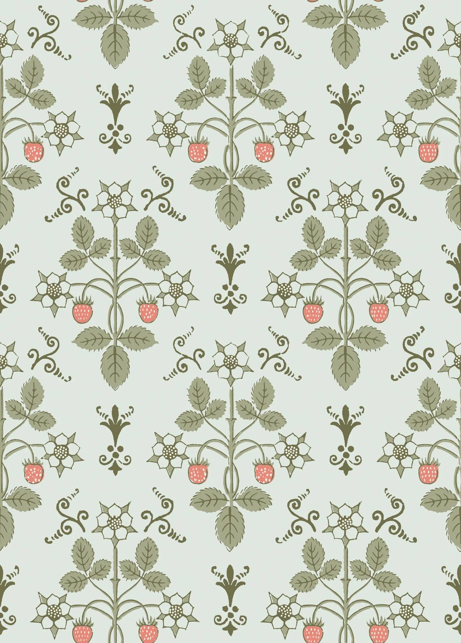 Strawberry‚ uniform print is an organic geometric of delicate strawberry fruits and flowers. Originally a hand-block printed design from the 1840s, this design has been reimagined in soft hues, playing to the pastoral elements found throughout.
