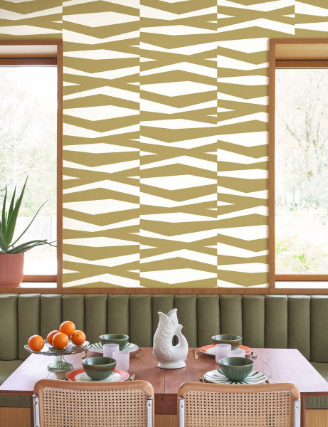 Geometrically stylized zebra patterned wallpaper.