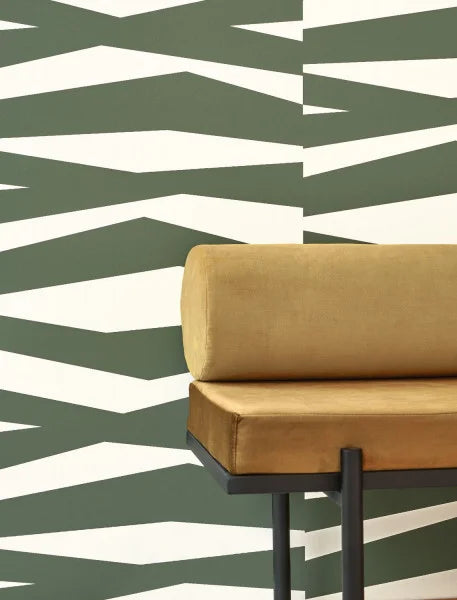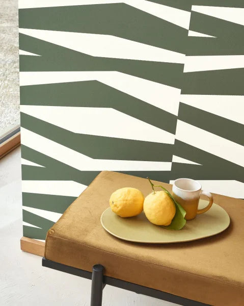 Geometrically stylized zebra patterned wallpaper.