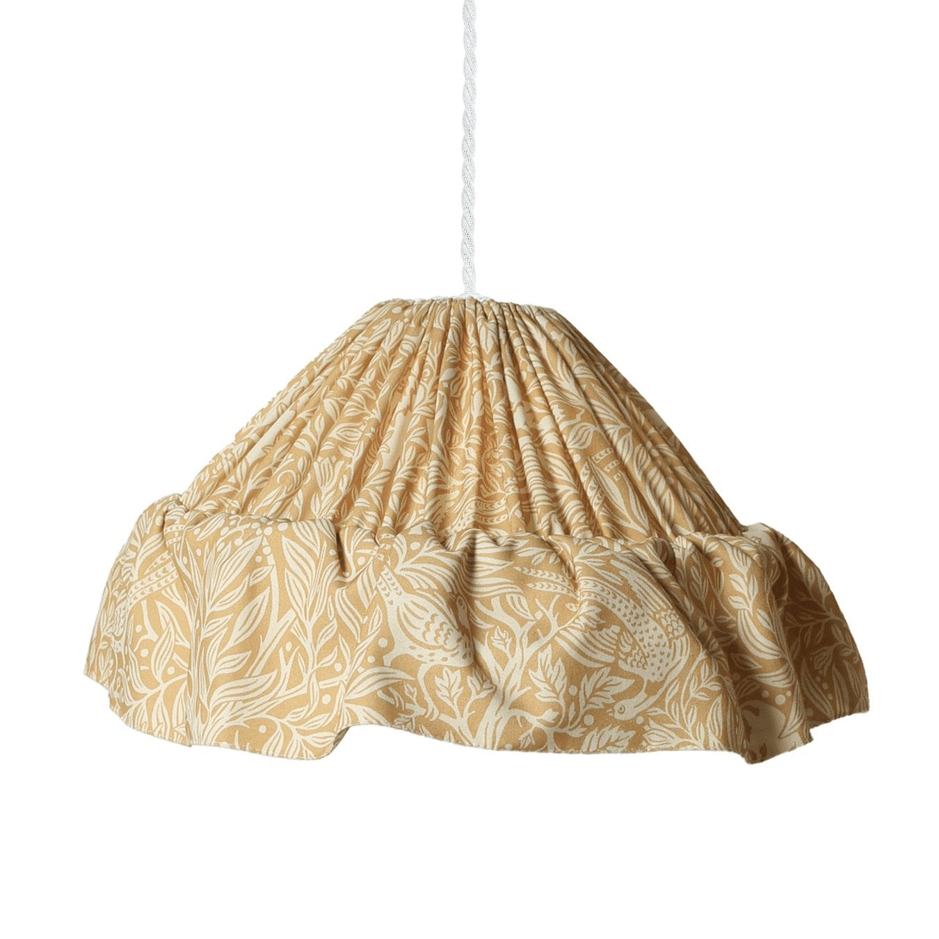 Valge keerutatud kangasjuhe on varustatud aasaga konkskinnituseks. E27 lambipesa. Maksimaalne võimsus 25 W. IP20. Soovitame kasutada LED-pirni kuni 8 W.